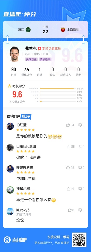 2、弗兰克(浙江队)