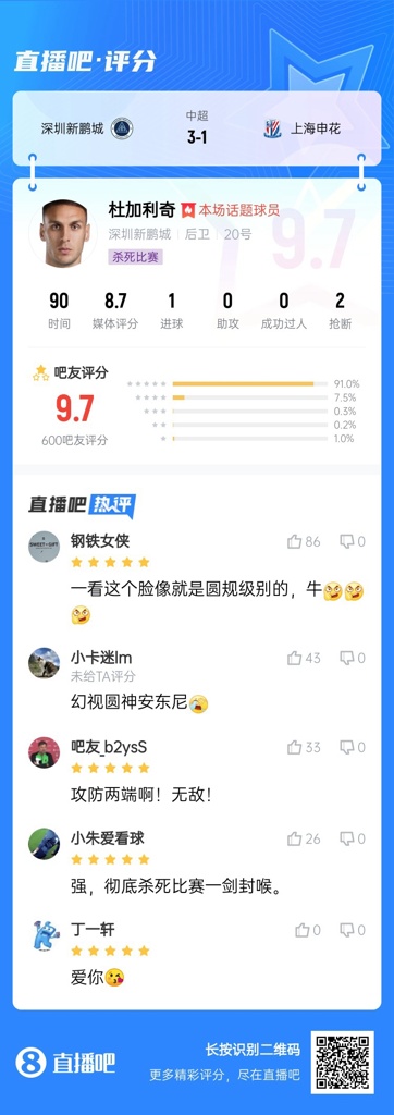 【】中超首轮最佳球员:于金永险胜,得票率仅多基莱斯1.7%