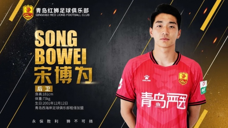 欢迎宋博为租借加盟青岛红狮。作为球队今夏的重要引援,他的到来将为我们的防线注入新的活力,为球队的战术体系增添更多可能性。青岛红狮足球俱乐部,向他的到来致以热烈欢迎和诚挚期待!